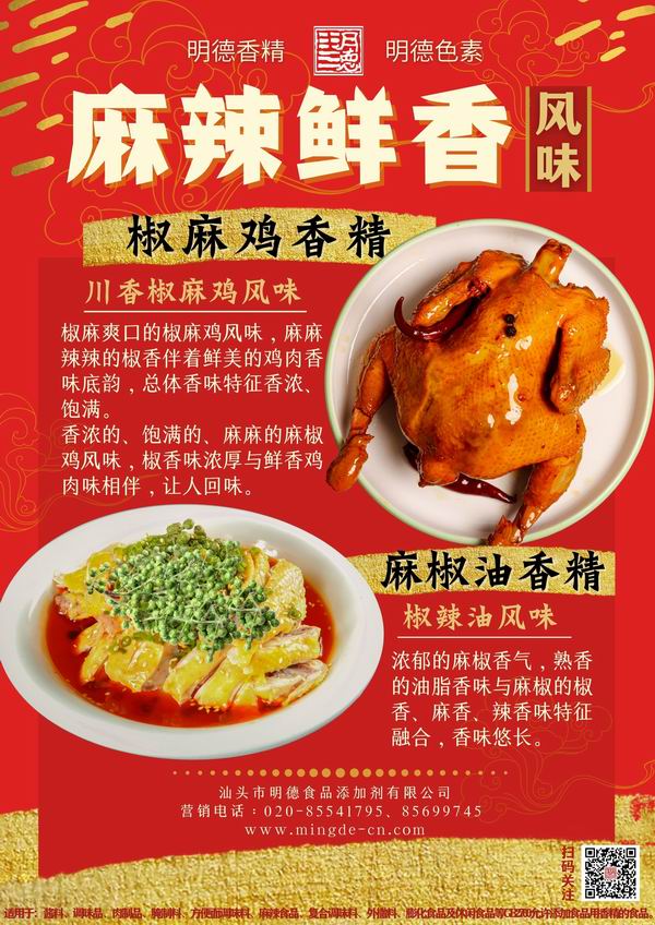 明德 麻辣醬香精、香辣醬香精 香飄四溢。麻麻辣辣的川味麻辣香、鮮香與濃厚的醬香相融合。香噴噴的香辣醬風味,具備辣醬的醬香和辣香味交融,回味悠長,令人垂涎欲滴。